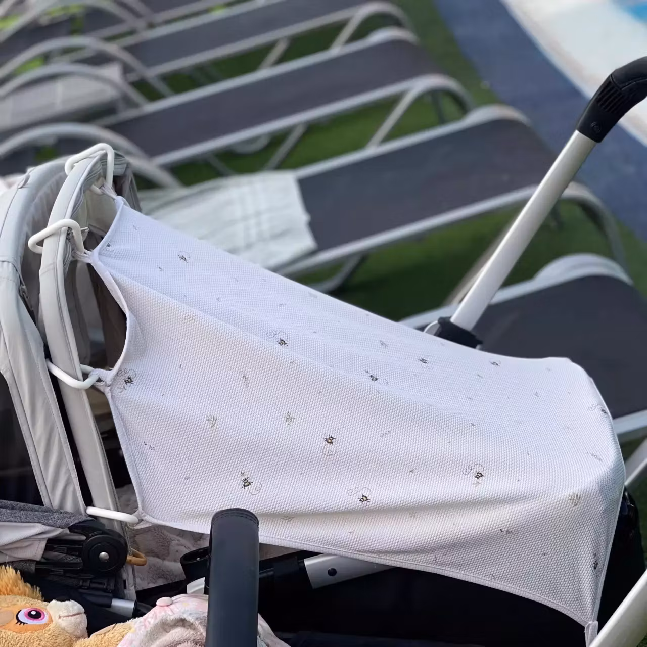 Genom att använda dessa två tillsammans skapar du en trygg, sval och skuggig miljö för din bebis oavsett om ni är på promenad, i bilen eller på stranden. Båda produkterna blockerar 98% av solens strålar och är tillverkade i ett lätt material som andas.