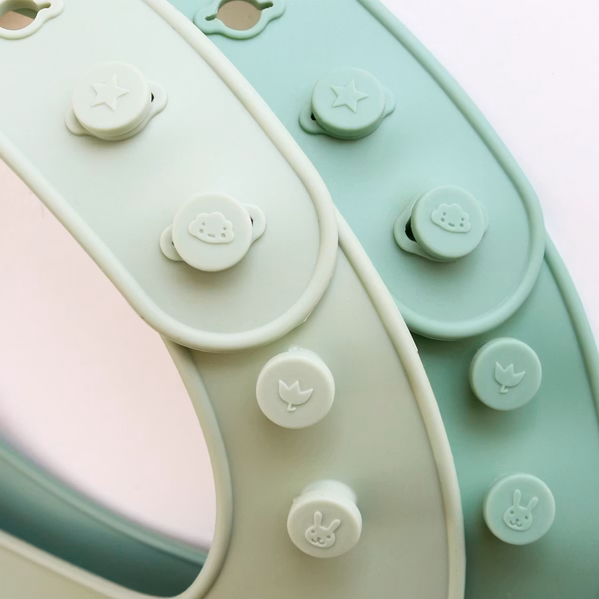 Dessa haklappar är perfekta för att hålla ditt barns kläder rena och samtidigt är de väldigt bekväma. Tillverkade av 100% livsmedelsgodkänd silikon som är både vattentätt och smutsavvisande. Den justerbara nackstängningen gör haklappen lämplig för spädbarn och småbarn. Haklapparna är lätta att rengöra och förvara.