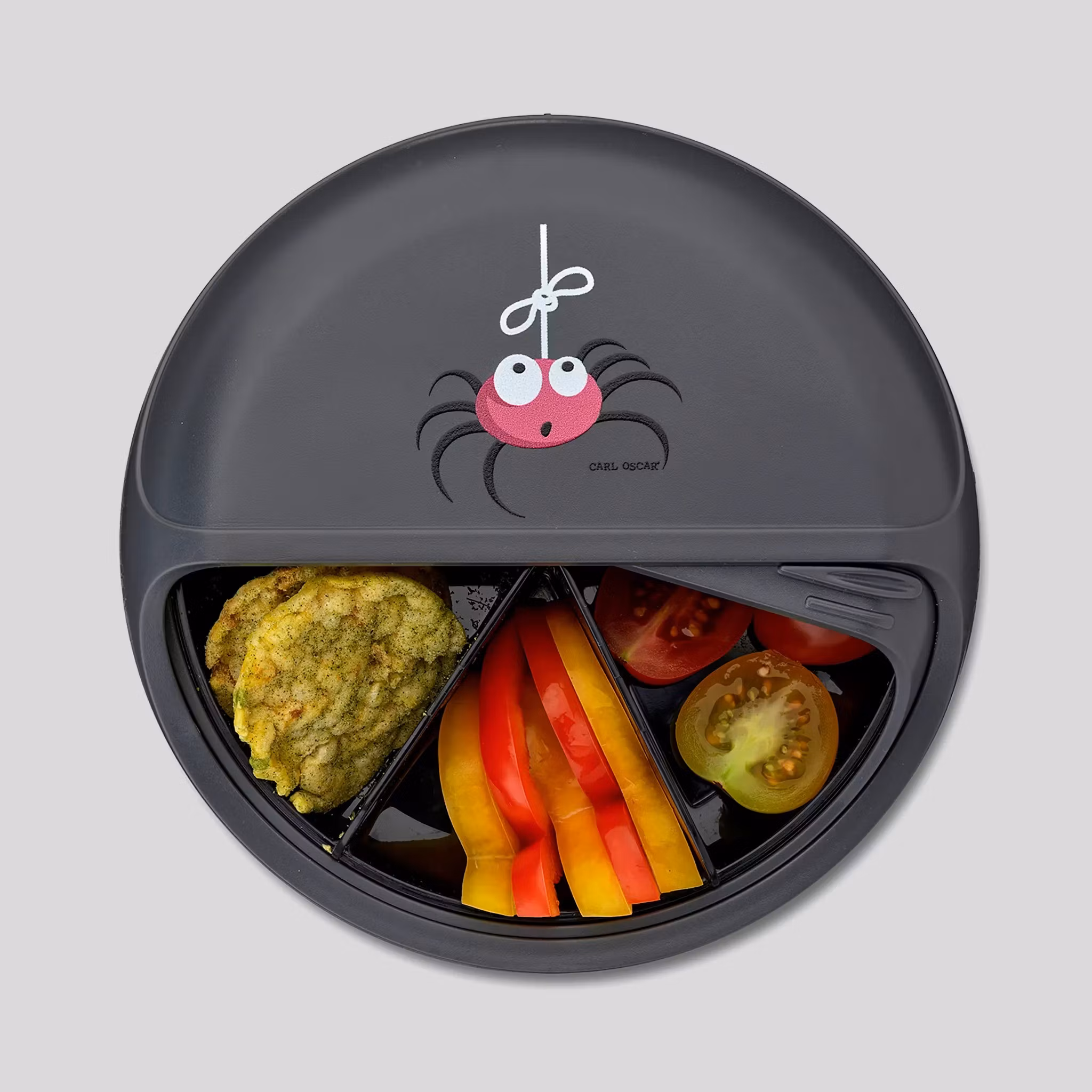 SnackDISC - Den perfekta matlådan för barn och familjer: Miljövänlig: Skippa engångsförpackningar och spara både pengar och miljön med denna återanvändbara matlåda. Praktisk: Den kompakta designen tar minimalt med plats i väskan, men rymmer massor av godsaker. Hållbar: SnackDISC håller maten fräsch och god i flera timmar, perfekt för utflykter och picknickar. Rolig: Snurra på facken och skapa oändliga kombinationer av snacks - låt fantasin flöda! Lättanvänd: Innerdelen kan lyftas ut och placeras på bordet eller picknickfilten för enkel servering. Diskmaskinssäker: Enkel att rengöra och återanvända gång på gång.