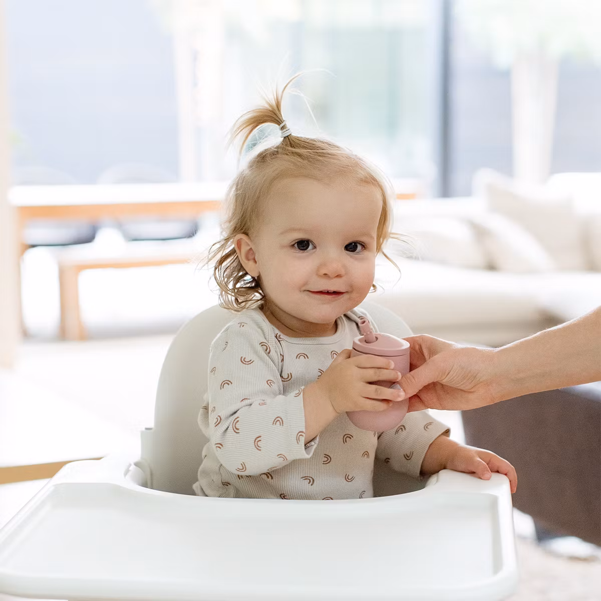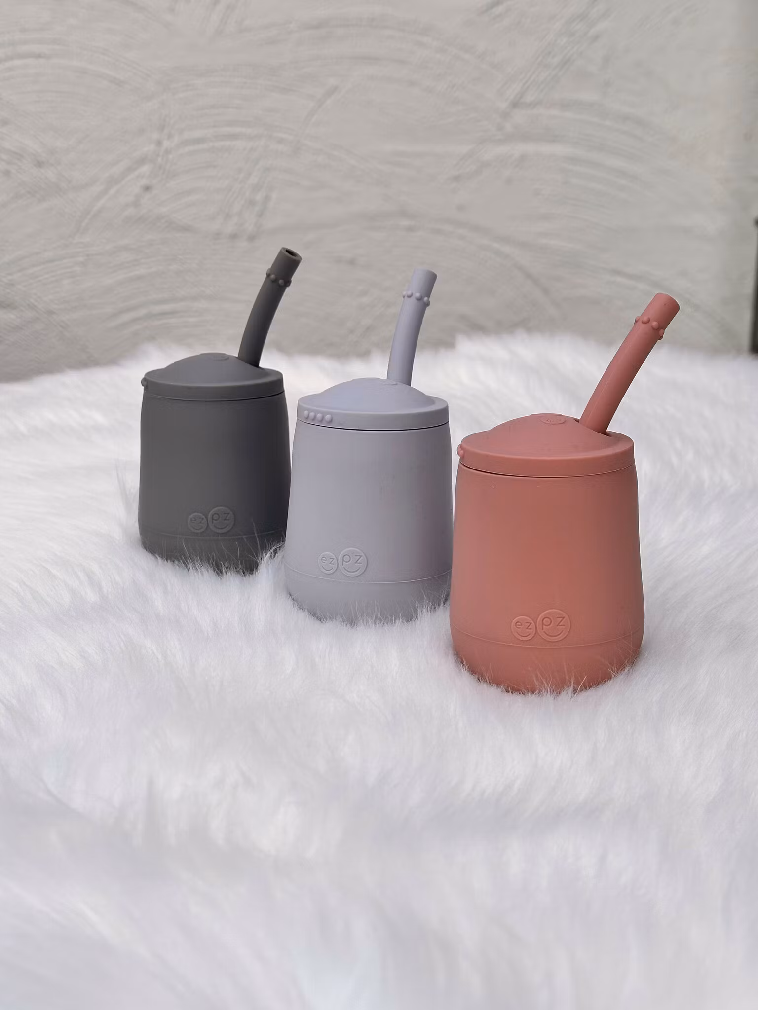 Nybörjarmugg för självständigt drickande. Med & utan lock, sugrör med sensoriska knoppar, mjuk silikon & viktad botten. BPA-fri.