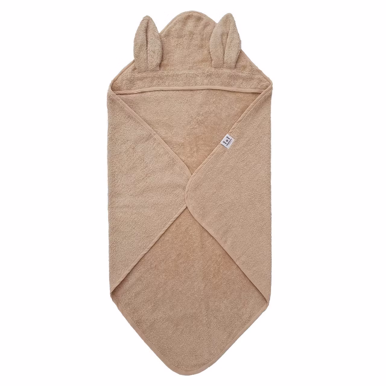 Badcapen har en huva med söta kaninöron och bakpå en rejäl ögla för att enkelt kunna hängas upp på badrumskroken när den inte används. Denna otroligt mjuka badkappa är ett babytillbehör tillverkad av 100% ekologisk GOTS märkt bomull som definitivt kommer att höja mysfaktorn efter ett bad.