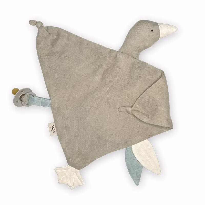 Snuttefilt Gås i ekologisk bomull, säker och mysig. Perfekt för napp och tröst. Hållbar design, etisk produktion. Finns i fler färger.