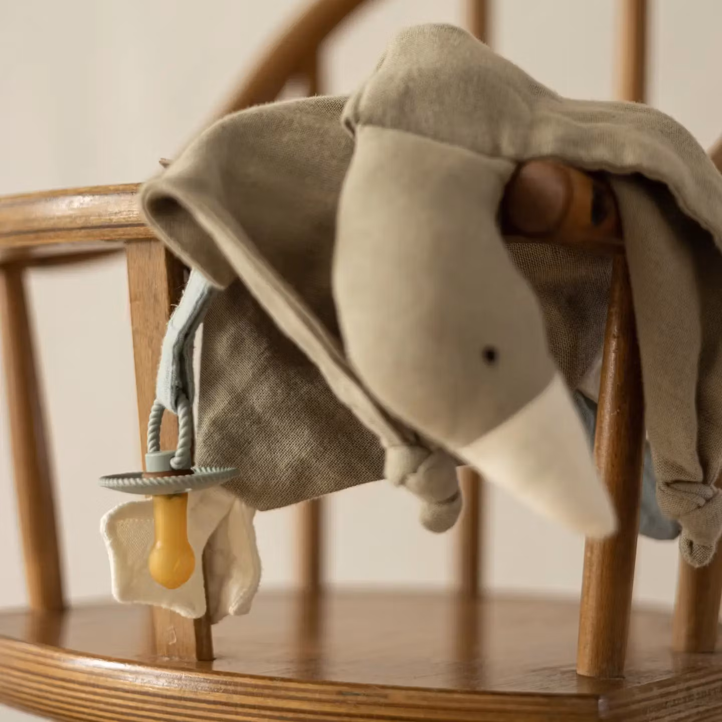 Snuttefilten är tillverkad i 100% ekologisk bomull med en fyllning av återvunnen polyester i huvudet, vilket gör den både hållbar och säker. Den genomtänkta designen inkluderar en praktisk rem, perfekt för att enkelt fästa en napp – så den alltid finns nära till hands.