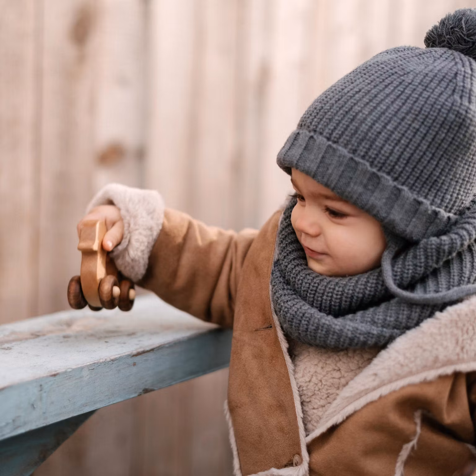 Handgjord träanka på hjul. FSC-certifierat trä, behandlad med bivax & oljor. Ekologisk leksak som tränar motorik.