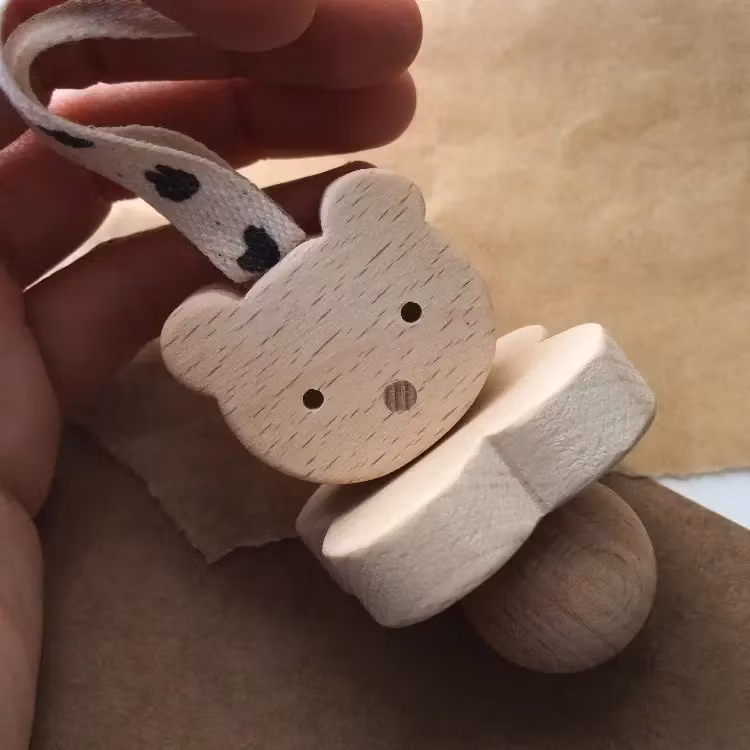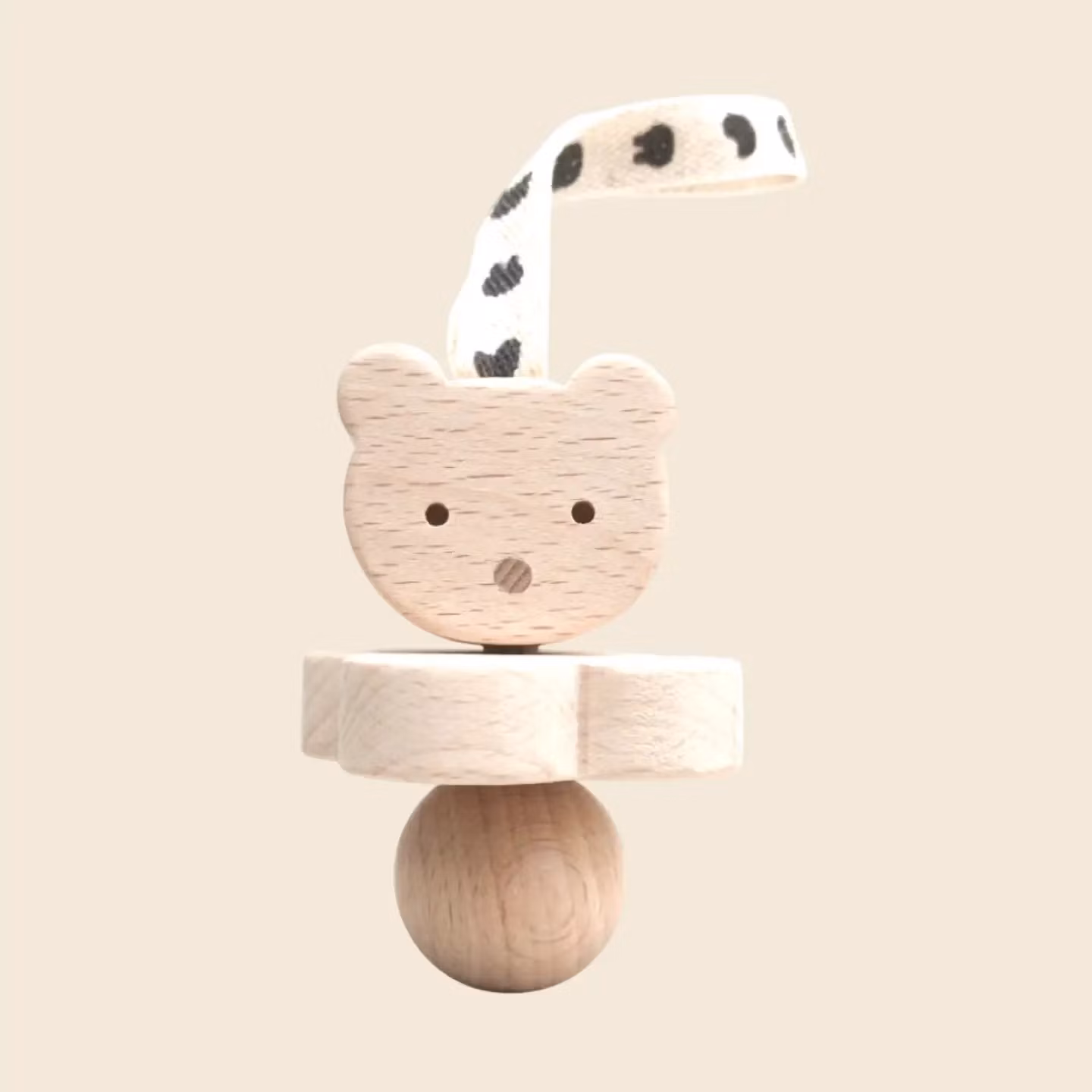 Denna lilla, men ändå rejäla, träskallra är designad för att vara enkel att greppa för mycket små händer. Skallran, som pryds av en liten björnfigur, består av flera moduler som barnet kan pilla på för att stimulera sin finmotorik och hjälpa dem att försiktigt vakna upp till världen.