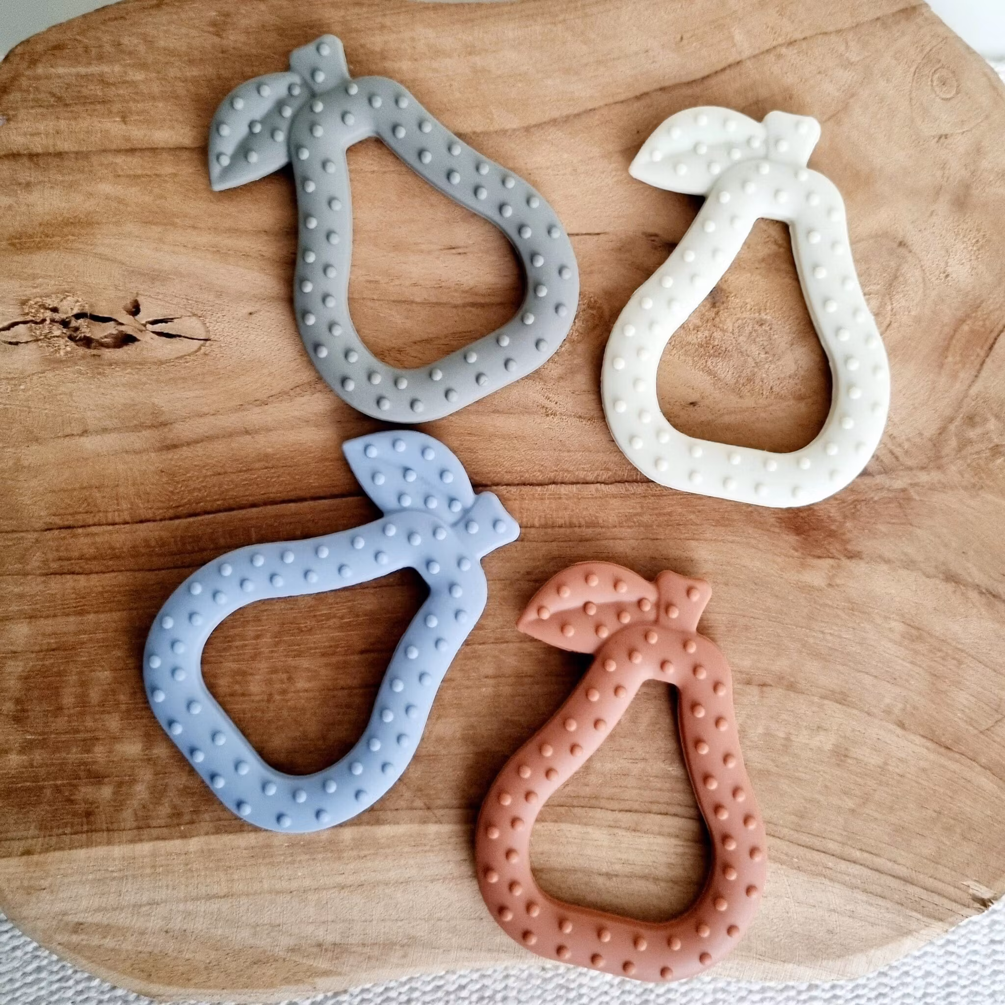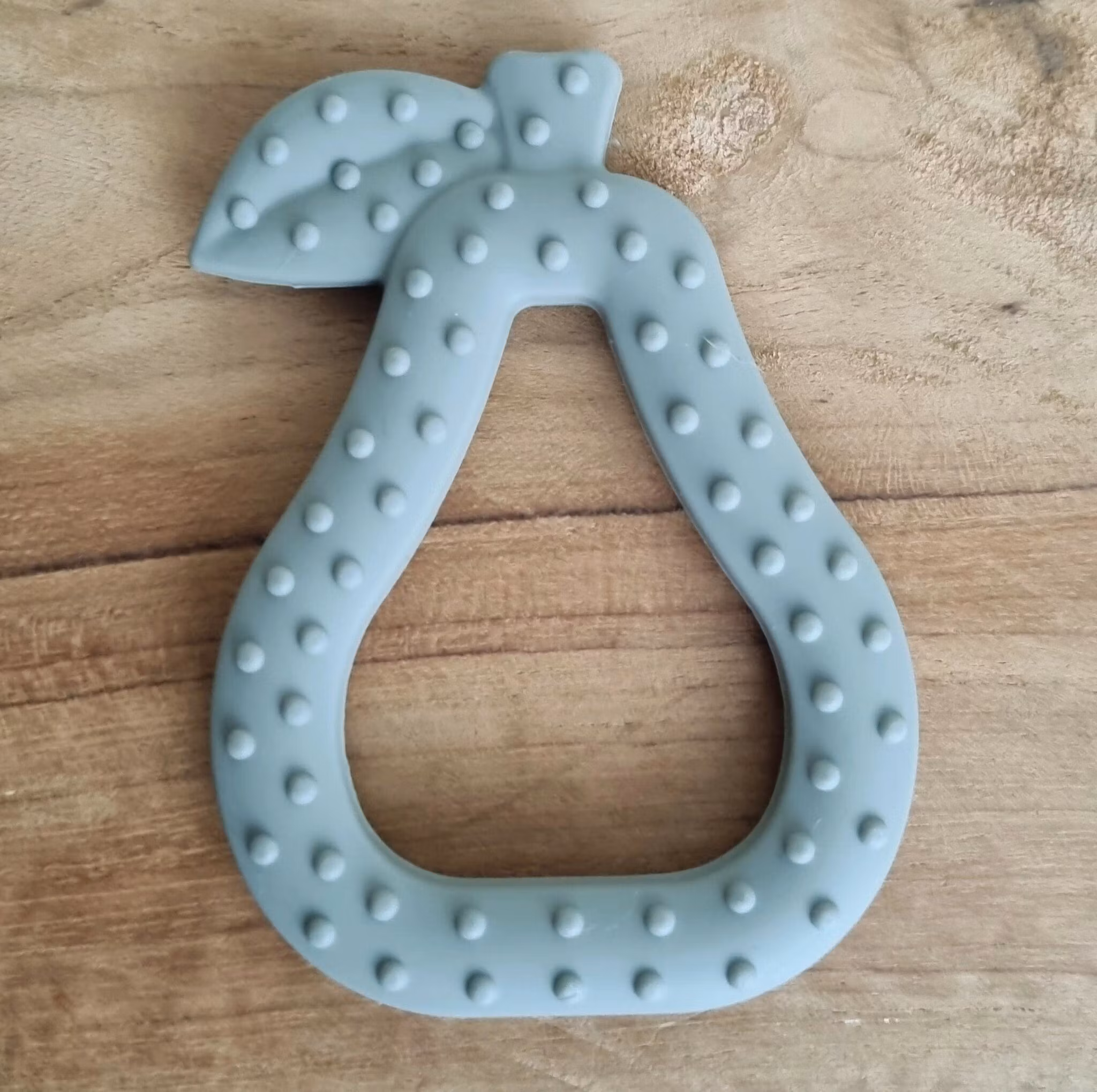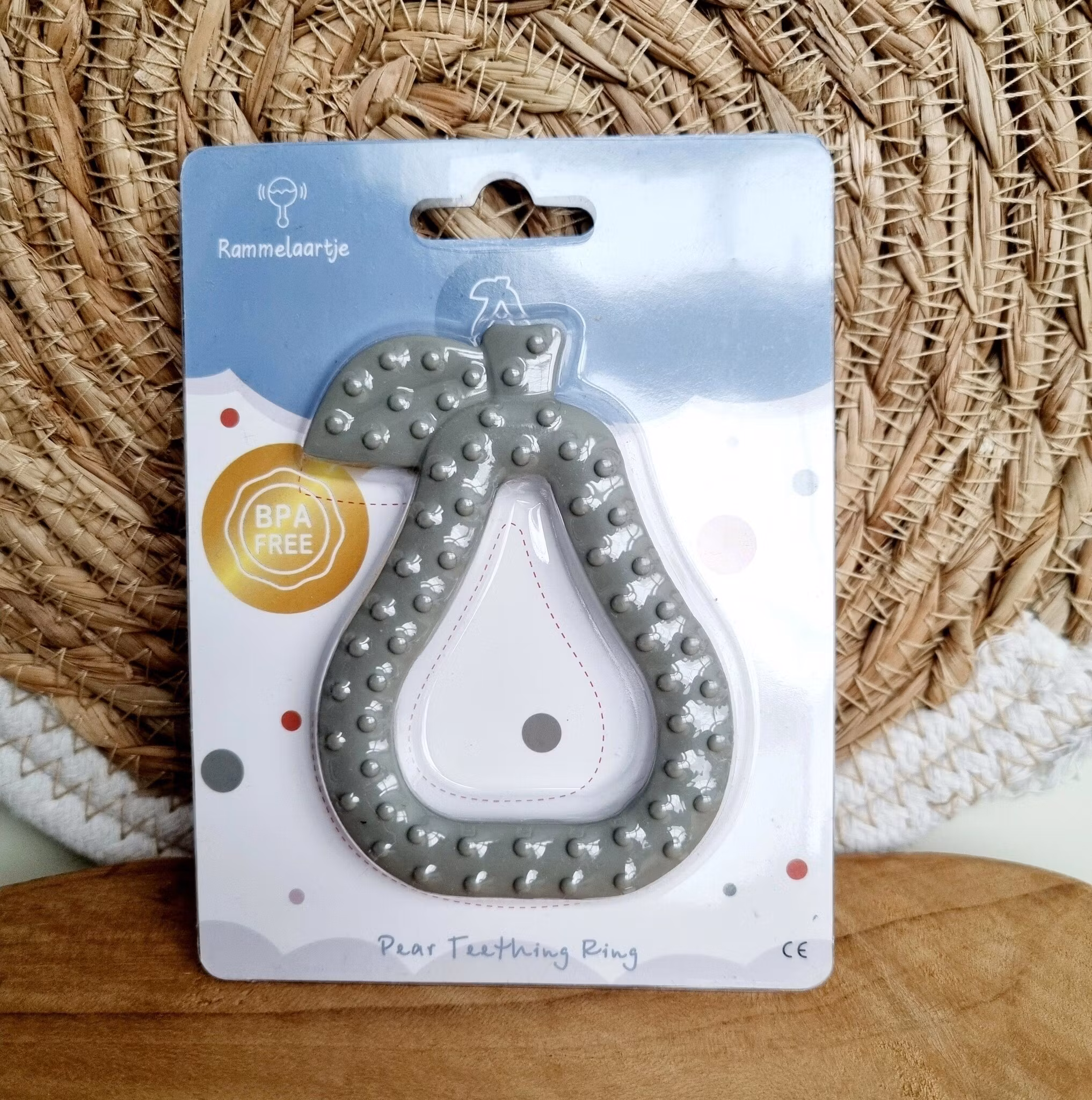 Bitring i 100% babysäker silikon, formad som ett päron. Lindrar effektivt smärta vid tandsprickning. Flexibel & lätt att greppa.