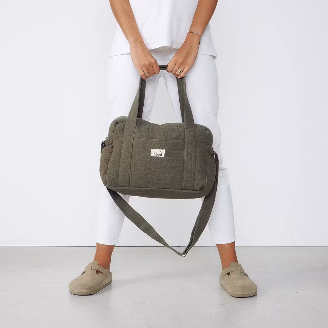Nu kan du enkelt och snyggt organisera allt du behöver för ditt lilla underverk med denna ultralätta och khakifärgade skötväska från Bebel!